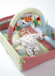Blossom Farm 3-in-1 Baby Mat£40, birth+This is a good starter-gym with detachable soft toys that are suitable even for the youngest babies. The gym can be unfolded for a simple playmat or the bumper reassembled around baby's cot for interest at night. |